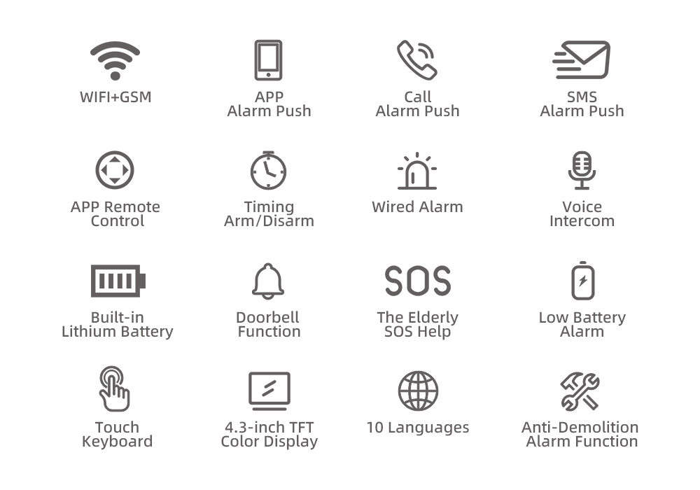 (App push/SMS/surveillance vocale/alarme centrale pour assurer la performance de l’alarme stable et fiable)