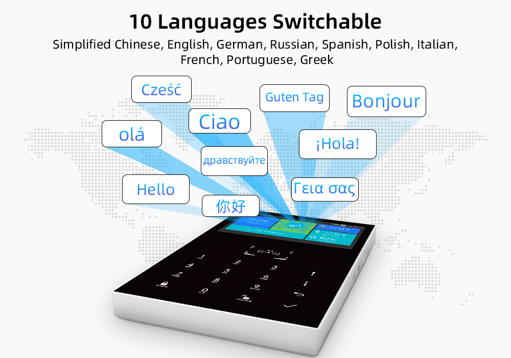 Peut définir la langue: chinois, anglais, russe, allemand, espagnol, polonais, grec, italien, français, portugais.