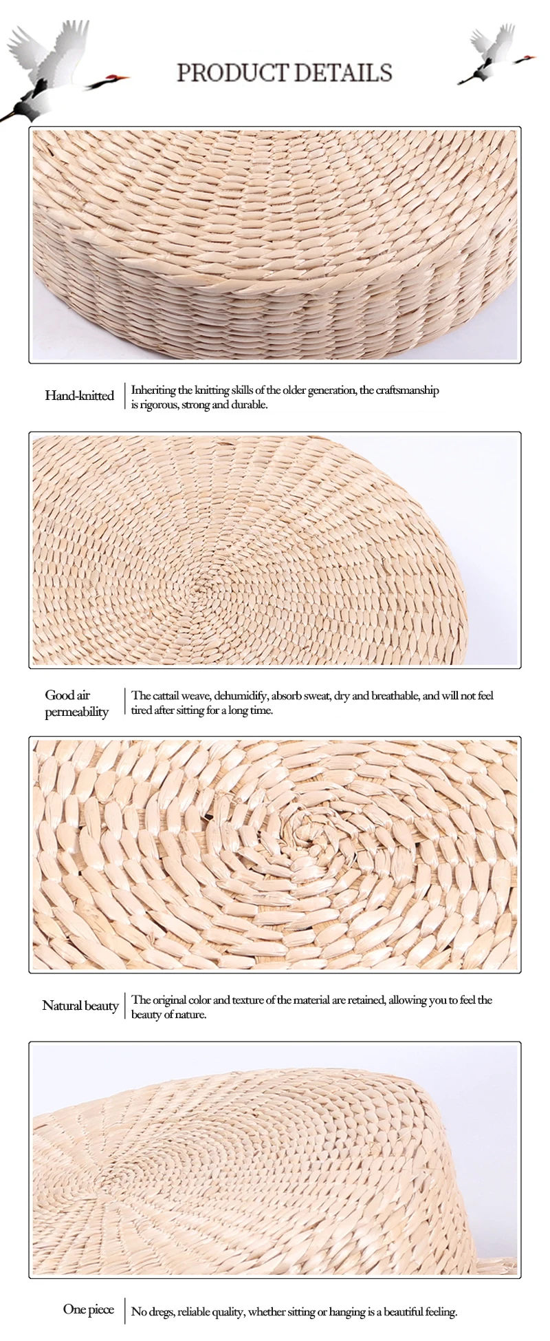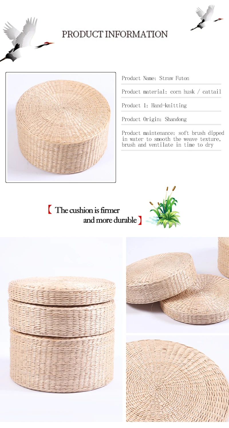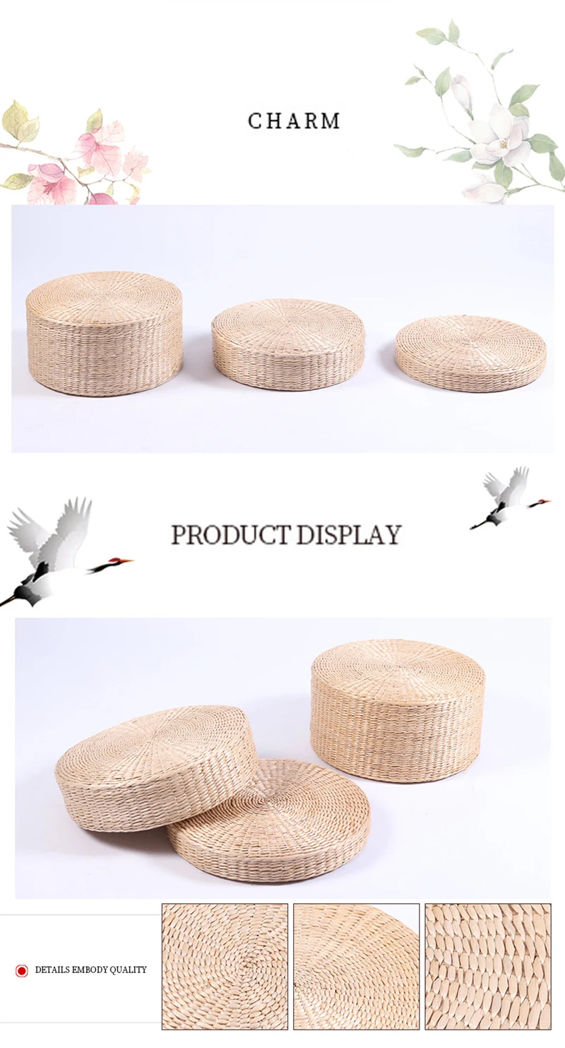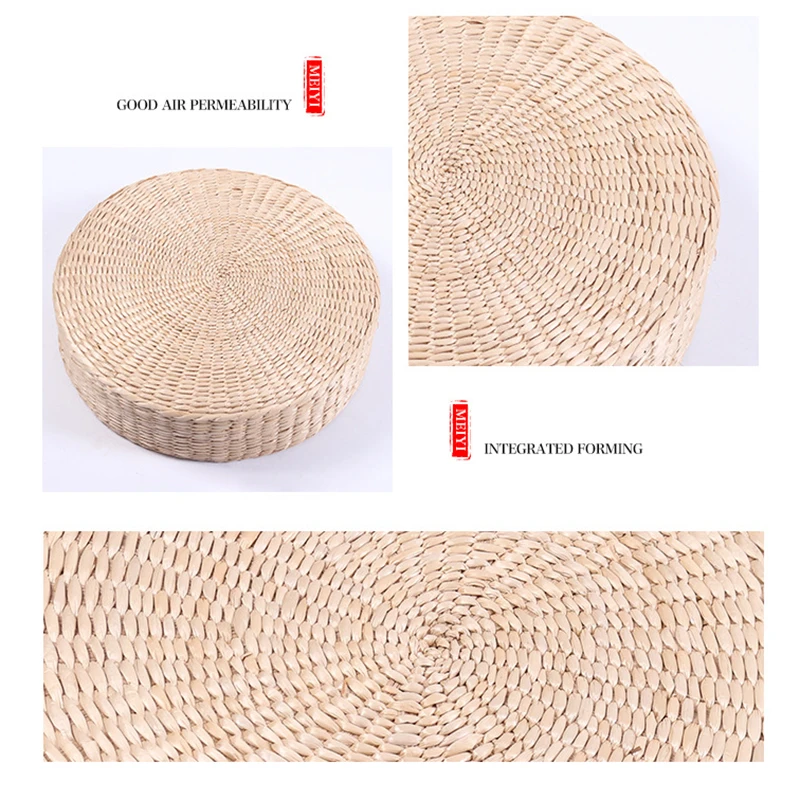 Hot 30cm * 30cm tissé à la main paille naturelle ronde Pouf Tatami coussin sol Style japonais coussin maison TextileDescription: