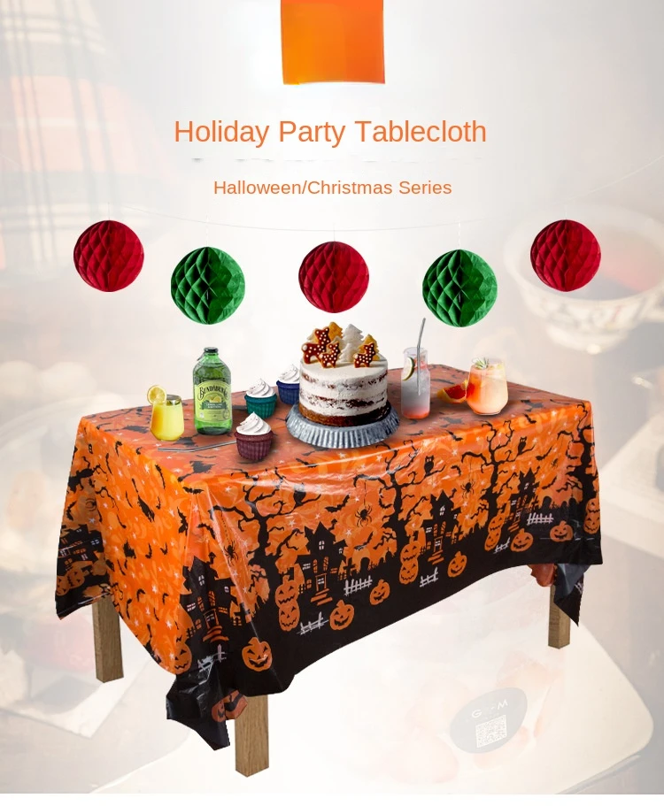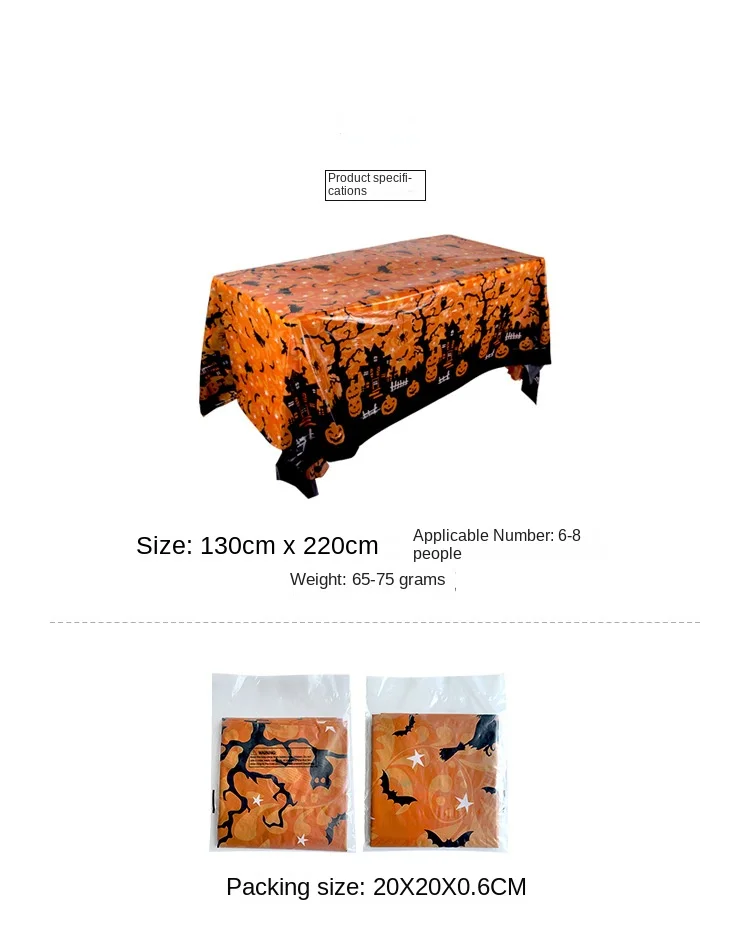 Nappe de Décoration d’Halloween, Citrouille, Toile d’Araignée, Chauve-Souris, Couverture de Table en Plastique, Fournitures de ixà Domicile