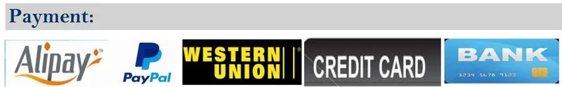 Vous pouvez payer par carte de crédit ou autre carte bancaire privée via Alipay directement. Vous pouvez également payer via Western Union ou Paypal ou virement bancaire T/T l’argent, s’il vous plaît laissez-nous savoir si vous avez des questions. Merci.