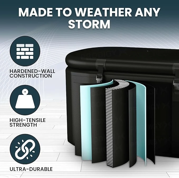 Baquet de bain de glace Avec fibre de verre renforcée et PVC doux pour la peau, qui a une paroi durcie et un design isolé pour une durabilité à vie.