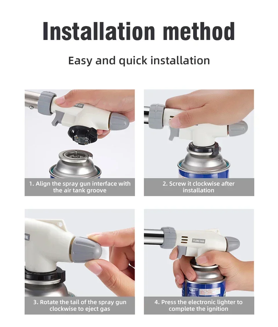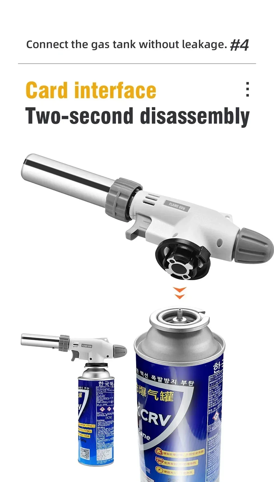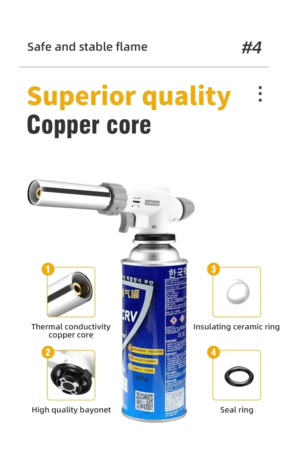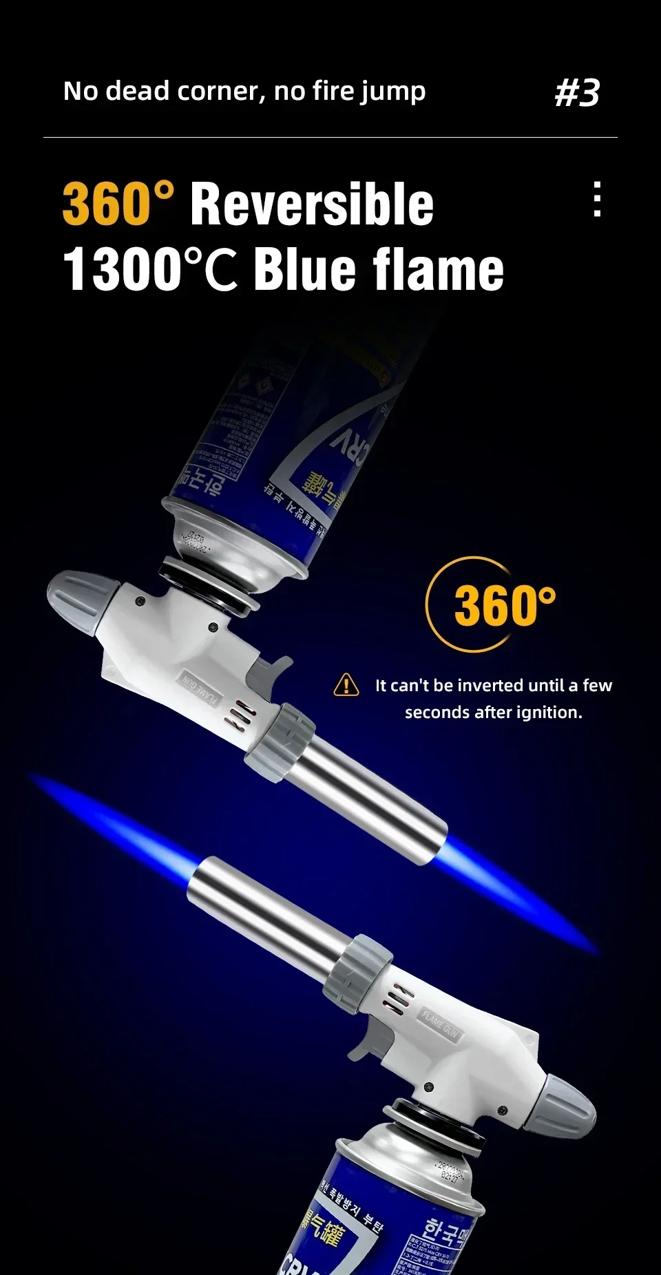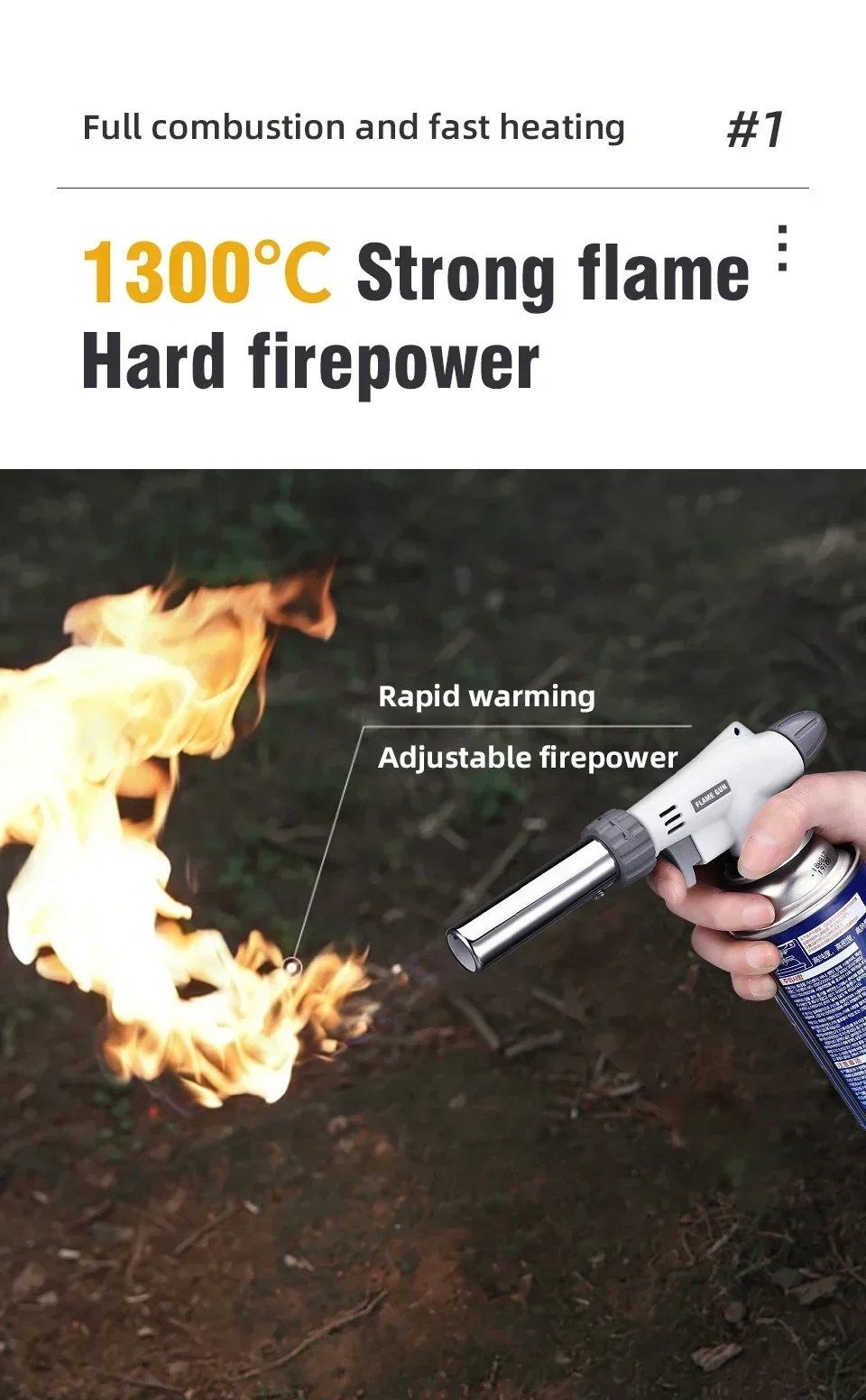 Réservoir de gaz portable en acier inoxydable de type carte avec tête de pistolet pulvérisateur. Le pistolet peut être inversé avec un allumeur et une lampe de pulvérisation
