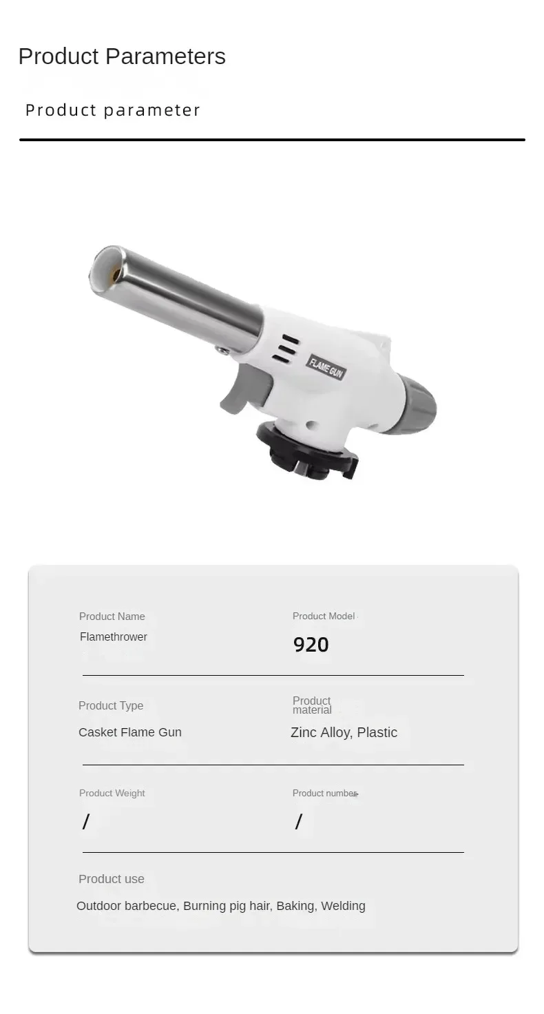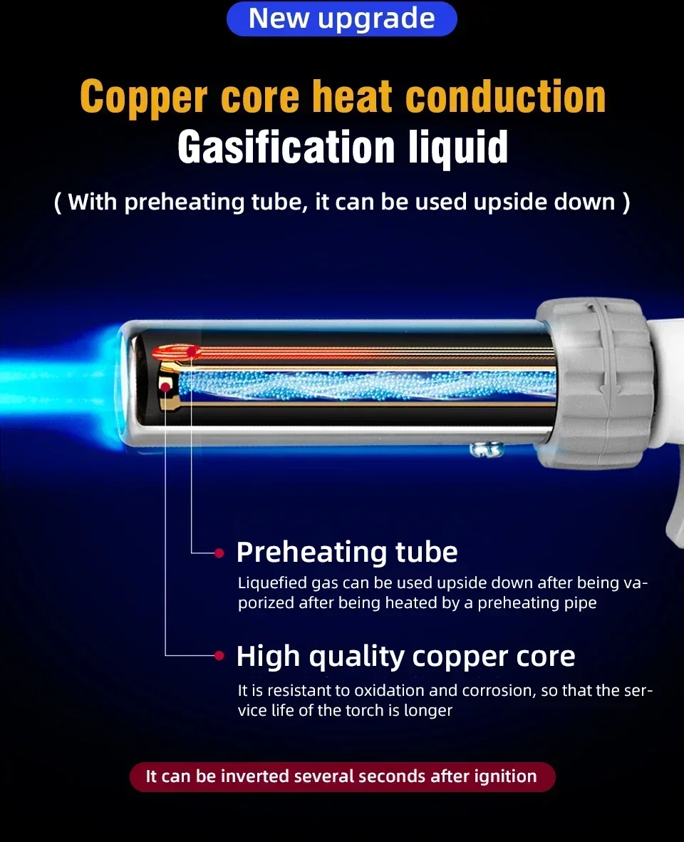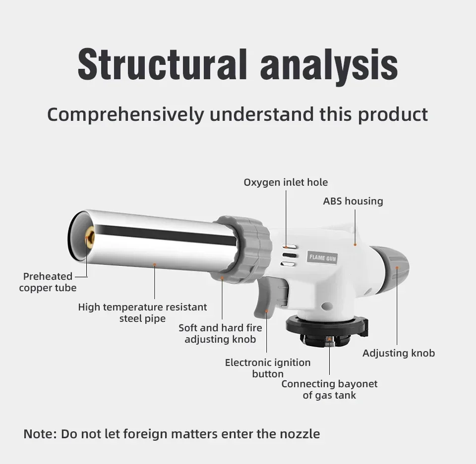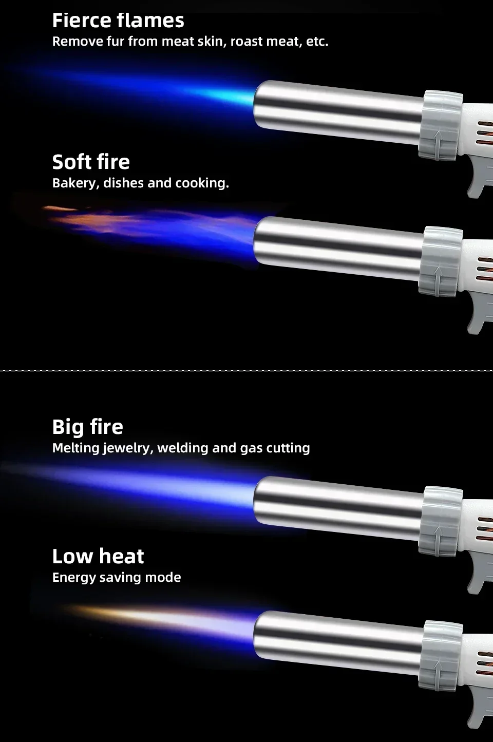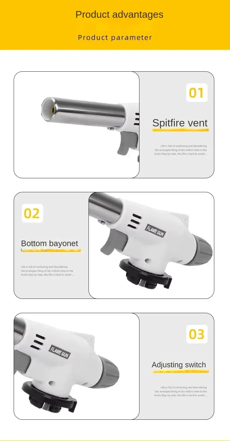 Réservoir de gaz portable en acier inoxydable de type carte avec tête de pistolet pulvérisateur. Le pistolet peut être inversé avec un allumeur et une lampe de pulvérisation