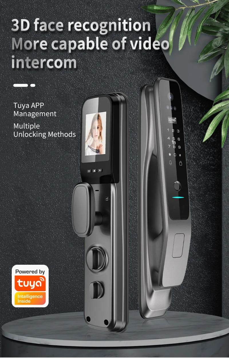 Serrure de porte intelligente à empreintes digitales avec caméra HD 3D, contrôle de l’application Tuya, Wi-Fi, Face Heroes, entrée sans clé pour la maison et le bureau, l’hôtel