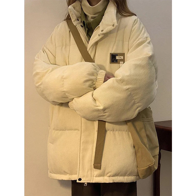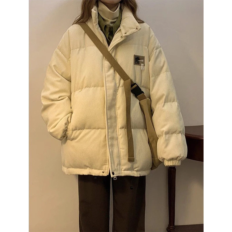 Parkas en velours côtelé pour femmes, Doudoune respirante, Streetwear d’hiver, Doudoune optique chaude, Poches coréennes, Coton rembourré, Nouveau