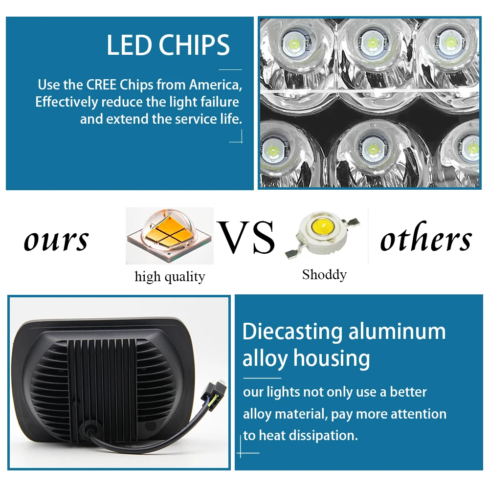 1/2x Phare LED noir 5X7 7×6 pouces