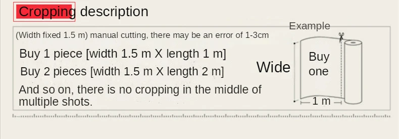 Order “50pieces” = whole piece: 50meter *1.5meter